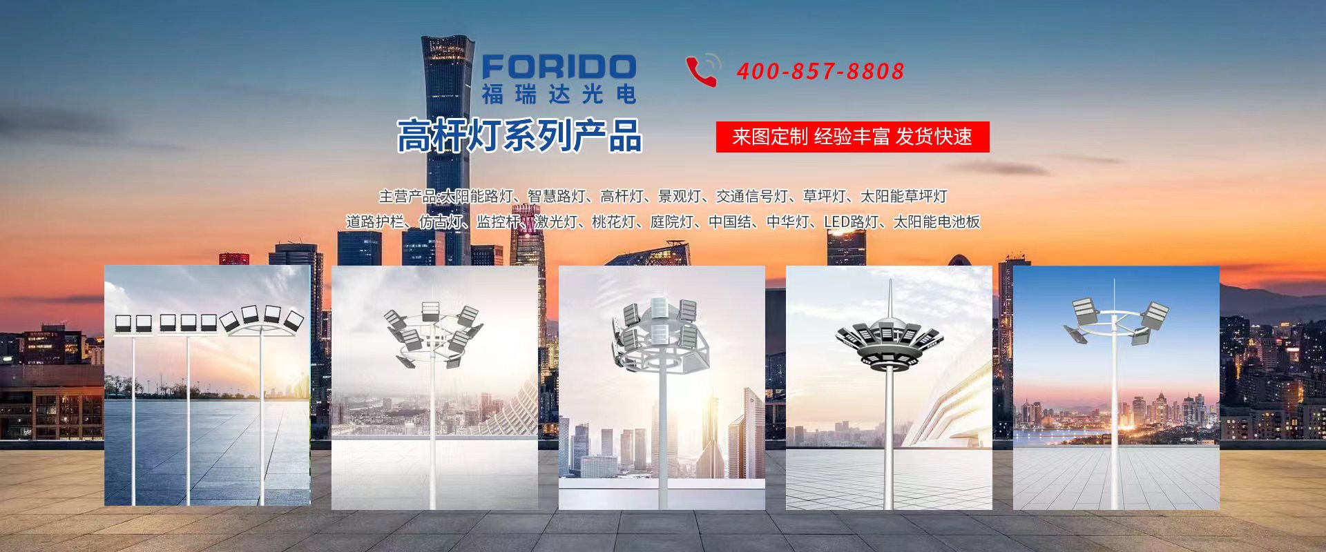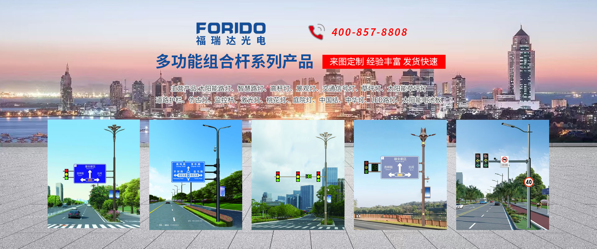 揚州福瑞達光電科技有限公司位于淮左名都歷史文化名城、中國路燈制造基地揚州市北郊菱塘工業(yè)園,公司占地面積76000平方米,注冊資金10518萬元,擁有高級技術嫻熟的員工280多人,擁有大型折彎機、激光切割、數(shù)控注塑機、壓鑄機、自動埋弧焊、氣焊、彩色粉末靜電噴塑等大型自動化設備,我公司是一家集設計、研發(fā)、生產(chǎn)、銷售、施工安裝服務為一體的戶外交通照明產(chǎn)品制造商,主要生產(chǎn)智慧路燈、太陽能路燈、LED路燈、高桿燈、景觀燈、交通信號燈、交通標志牌、通信鐵塔、路跨鋼結構、公交站臺、太陽能光伏組件、景點亮化、樓宇亮化工程的設計施工等。公司秉承開拓創(chuàng)新、銳意進取、精誠服務的企業(yè)精神,堅持以“誠信為本、技術為先、服務是金”的合作理念,我們憑借先進的制造工藝、優(yōu)質的產(chǎn)品質量、合理的市場價格和完善的售后服務贏得了廣闊的市場和客戶的信賴。  我公司已通過ISO9001質量體系認證、ISO14001環(huán)境管理體認證,CQC產(chǎn)品認證,中國節(jié)能產(chǎn)品認證,通過“CCC”強制性產(chǎn)品認證,具有市政總承包,照明,交安,設計等資質···